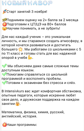 запрещены: кликбейт, излишняя эмоциональность, обещания и гарантии заработка/роста дохода, формулировки «самый лучший», «полный пакет», «все, что нужно» и иные подобные максимализмы;